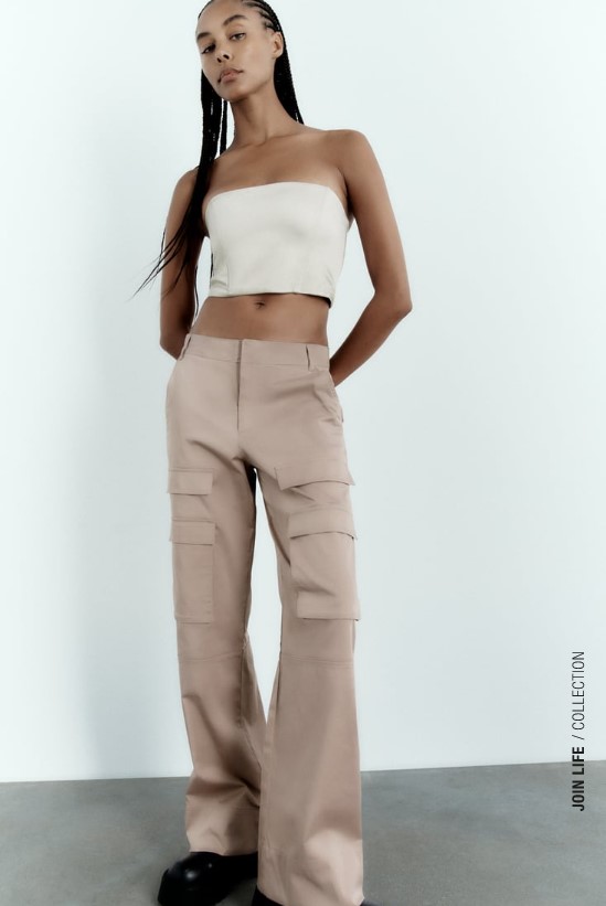 A pesar de que en Zara aún te puedes hacer con una gran variedad de modelos de pitillos, lo cierto es que cada vez son más los diseños de pantalones que entran en nuestro armario. Uno de los más buscados es el cargo, debido a su toque urbano. En este caso, no te querrás quedar sin estos, de tono nude y acabado satinado, que te encantarán. Además, por su precio, de solo 35,95 euros, merecerán la pena.