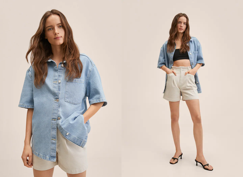 Esta camisa denim manga corta de Mango es una de las prendas más interesantes que se pueden encontrar en el catálogo actual de la firma española. Por su diseño y estilo combina con todo y es muy fácil hacer que forme parte de tus looks.