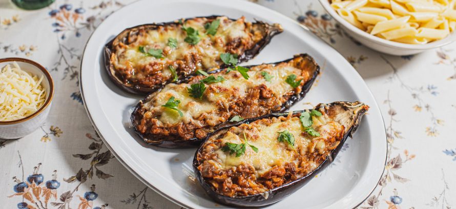 Estos son los ingredientes para unas berenjenas rellenas para 8 personas: