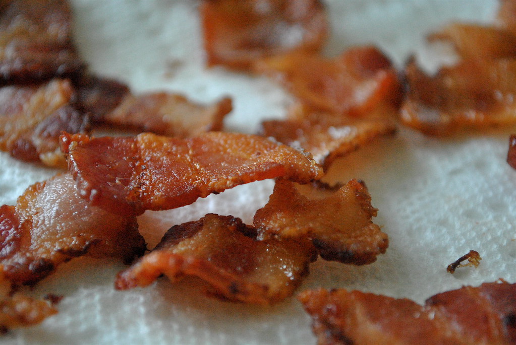 Una vez que tengas listos todos los ingredientes, es el momento de empezar a darle forma a tu arroz a la carbonara. Para ello, comienza cogiendo el bacon y picándolo bien en pequeños trozos. Después, añádelos a una cazuela caliente para dorarlos. Recuerda que no es necesario utilizar aceite, ya que se cocinarán a la perfección con su propia grasa. Después, reserva para añadirlos al final de la receta.