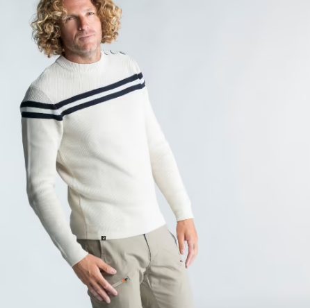 Es evidente que, más allá de los productos claramente enfocados a deportistas, Decathlon también se preocupa por la moda masculina en todos sus frentes. Simplemente hace falta echar un vistazo a modelos como este jersey marinero, beige con rayas azules, con cuello abotonado y materiales de calidad, que garantiza durabilidad y resistencia.