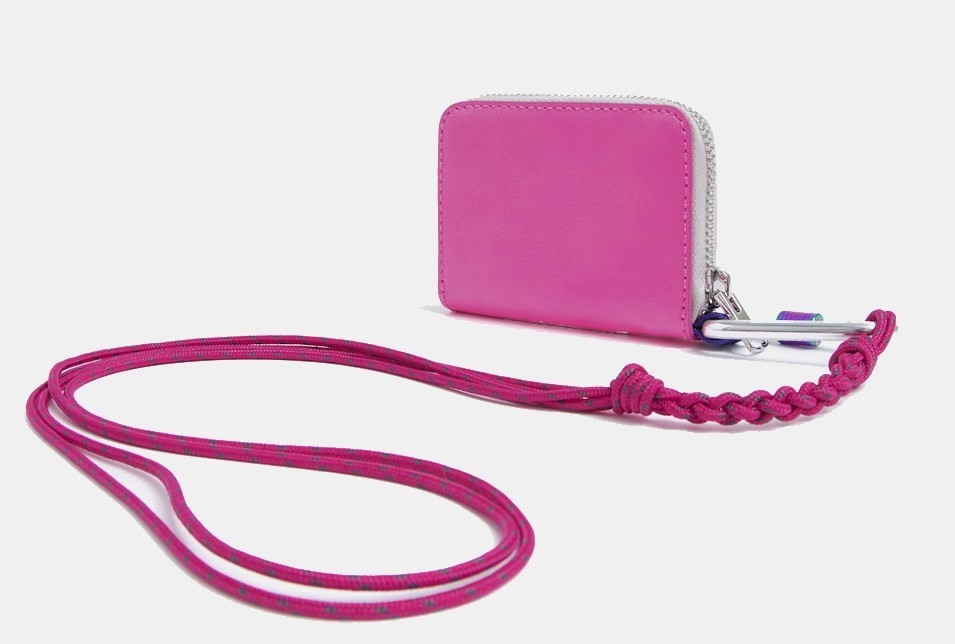 Precioso monedero de mujer fabricado en piel en el exterior de color rosa neón. La parte interior está elaborada de poliuretano y poliéster. Tiene un cierre de cremallera, tirador metálico y exterior personalizado a contraste con el logo estampado en blanco. Es perfecto para llevártelo en tus escapadas de fin de semana.