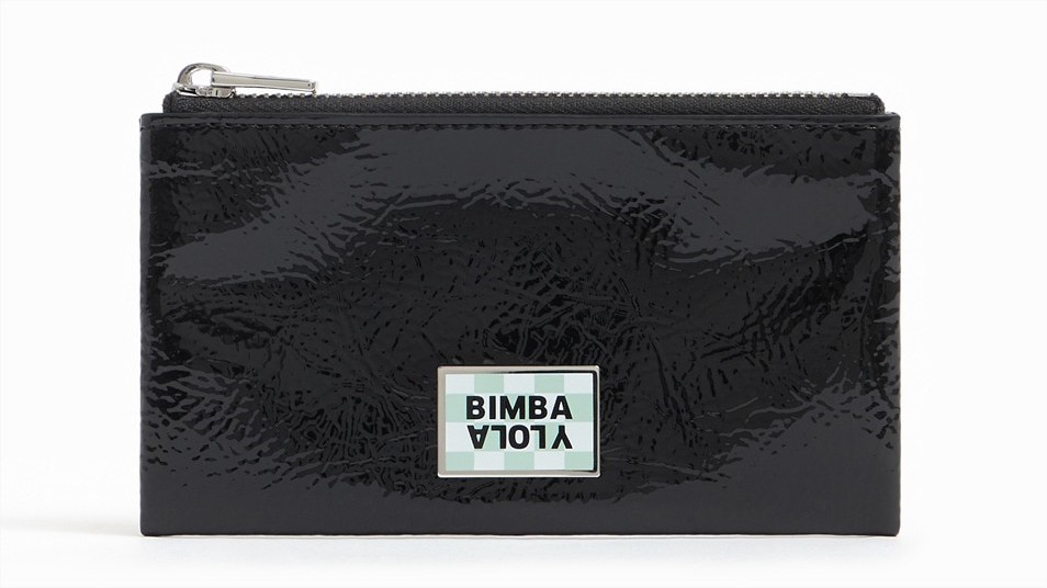 Bonito monedero de tamaño pequeño de charol en color negro. Tiene el cierre mediante cremallera y pequeño tirador metálico. En su interior hay espacio para tus monedas, pero también para que guardes algunas tarjetas que necesitas tener a mano. El exterior lo tiene personalizado con un placa metálica con el logotipo de Bimba y Lola. Este monedero va a ser muy práctico y no podrás salir a la calle sin él.