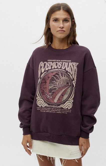 Como ves, lo bueno de las sudaderas es que tienes varios modelos a elegir: el de capucha sin cremallera, con ella, o bien sin capucha, como si fuera un jersey. Nos quedamos por ser de lo más vendido con este modelo de cuello redondo con detalle de rib en el cuello, puños, bajo y print en el pecho. Esta en concreto en un solo color y a un precio de lo más ajustado en Pull&Bear de 22,99 euros.