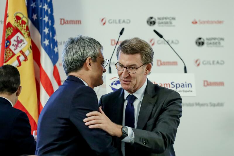 «Cuando dice el Gobierno ‘hemos de bajar los impuestos a la clase trabajadora’, bájeselos porque las rentas hasta 40.000 euros son clase trabajadora y hasta 50.000 euros también. Bájeselo. Bájeselo de una vez», ha reclamado Feijóo en su conferencia-coloquio en la Cámara de Comercio de Estados Unidos en España. El jefe de la oposición ha afirmado que hay partidos que «siempre que pueden, suben impuestos» y otros que «siempre que pueden, los bajan». «Nosotros estamos en esta segunda clasificación. Si podemos, los bajamos», ha enfatizado.