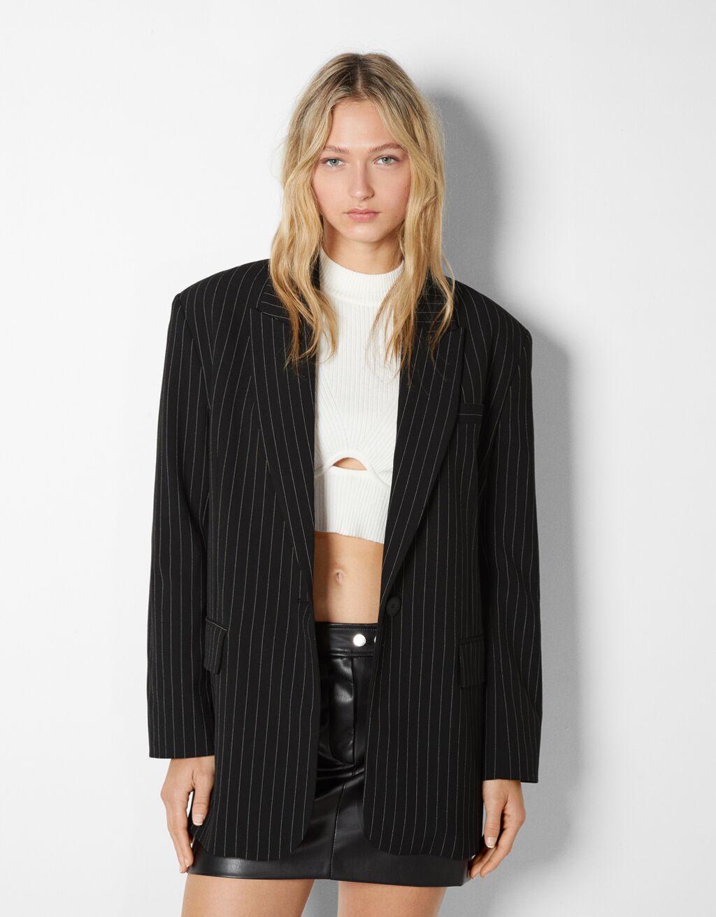 7Blazer de raya diplomática, un clásico de Bershka