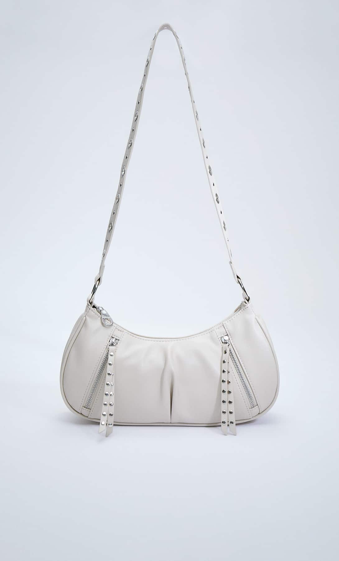 Otro de los mejores bolsos que puedes encontrar en el catálogo de otoño invierno de Stradivarius es esta bandolera de tachas en color crudo. Su tamaño la convierte en el complemento perfecto para llevar a diario y, gracias a su diseño sencillo, es un accesorio que combina con todo. Su precio es de 19,99 euros y puedes encontrarla disponible tanto en tiendas como en la web.