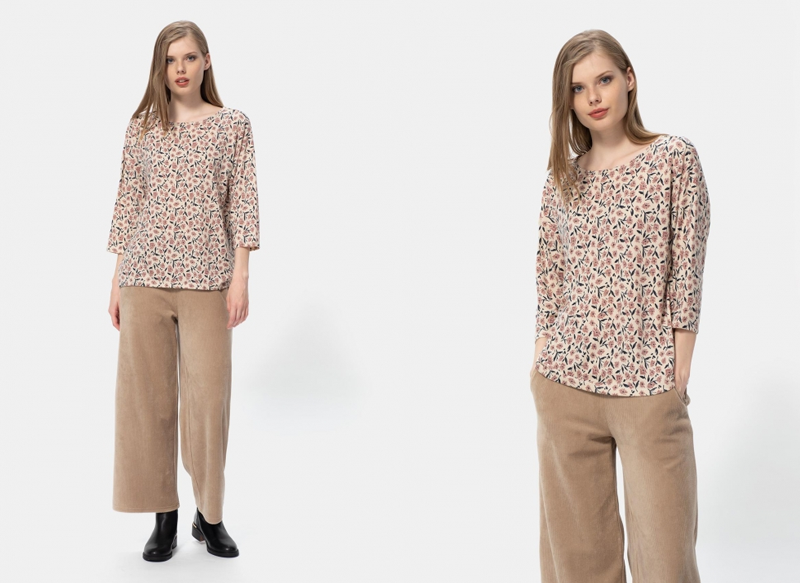 Una última recomendación es esta camiseta amplia para mujer TEX en color beige de Carrefour. Además, cuenta con un estampado floral de tonos claros por toda ella que la hacen perfecta para encajar con pantalones de color marrón o similares.