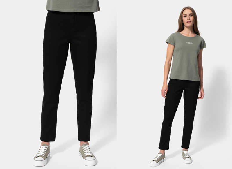Vendido por separado por 9,99 euros, es un pantalón vaquero de mujer de tipo slim que se encuentra elaborado con nuevos procedimientos de fabricación más sostenibles. Para ello se utiliza menos agua y energía. Están fabricados en algodón (78%), poliéster (21%) y elastano (1%).