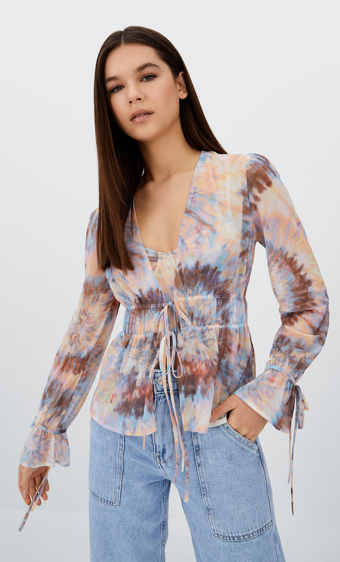 1Blusa de tul estampada de Stradivarius, una buena opción para el otoño