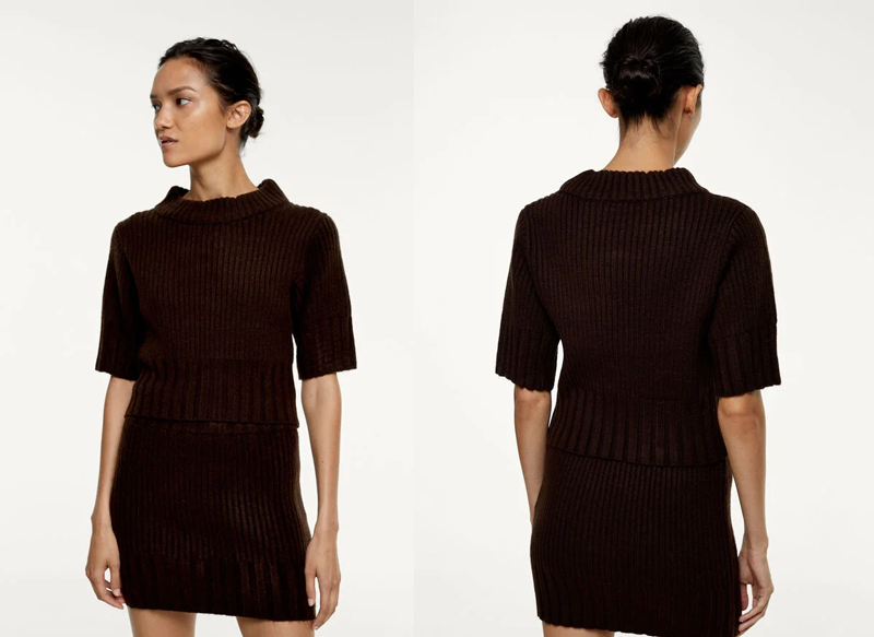 Entre las prendas de ropa que podemos encontrar en la firma lusa ideales para este otoño debemos destacar este top corto de punto, disponible en talla única por un precio de 29,99 euros.