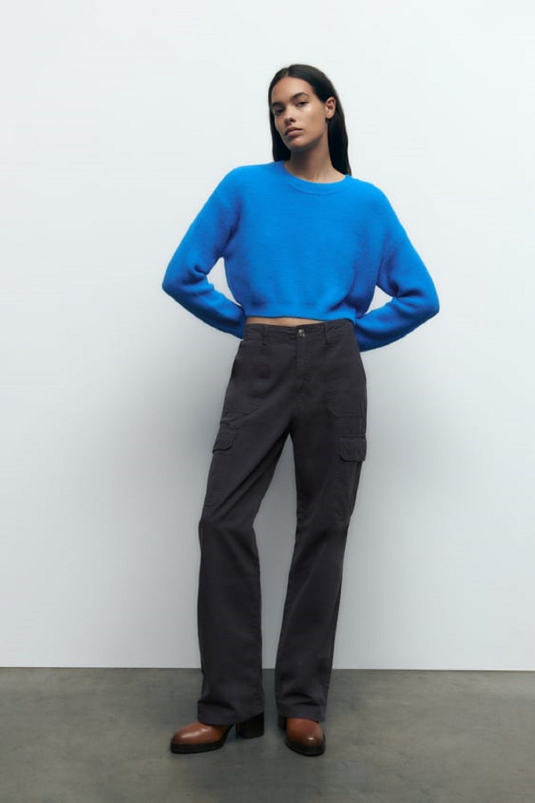 Hace años, se pusieron de moda las prendas con las que se veía el ombligo. Todas queríamos ser las primeras en salir y mostrar nuestra barriga. De ahí que hoy muchas decidieran hacerse un piercing justo en esa zona del cuerpo. Aunque se han seguido haciendo piercings, la moda de enseñar la barriga, estuvo en ‘stand by’ un tiempo, pero ahora ha vuelto más fuerte que nunca. Este jersey de cuello redondo y manga larga es la materialización de esta realidad. Zara lo trae en verde flúor y azul. Y si no quieres enseñar, basta con que utilices un pantalón de tiro alto. Múltiples opciones a las que sacarás partido desde el primer día y solo por 25,95 euros.