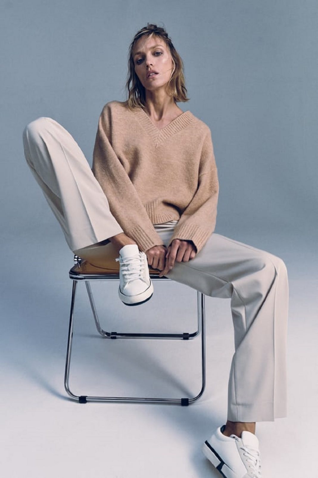 Zara tiene en ‘stock’ este exclusivo jersey que nos transporta a todo planeta con su escote pico. Disponible en color tostado y gris medio, te da la oportunidad de combinarlo con unos buenos vaqueros o pantalones blancos. Desde el primer día hasta el último, gozarás de un estilazo que dejará al esto con la baba caída. Seguimos en la línea ‘overside’ que nos trae de cabeza. Cuesta 27, 95 euros.