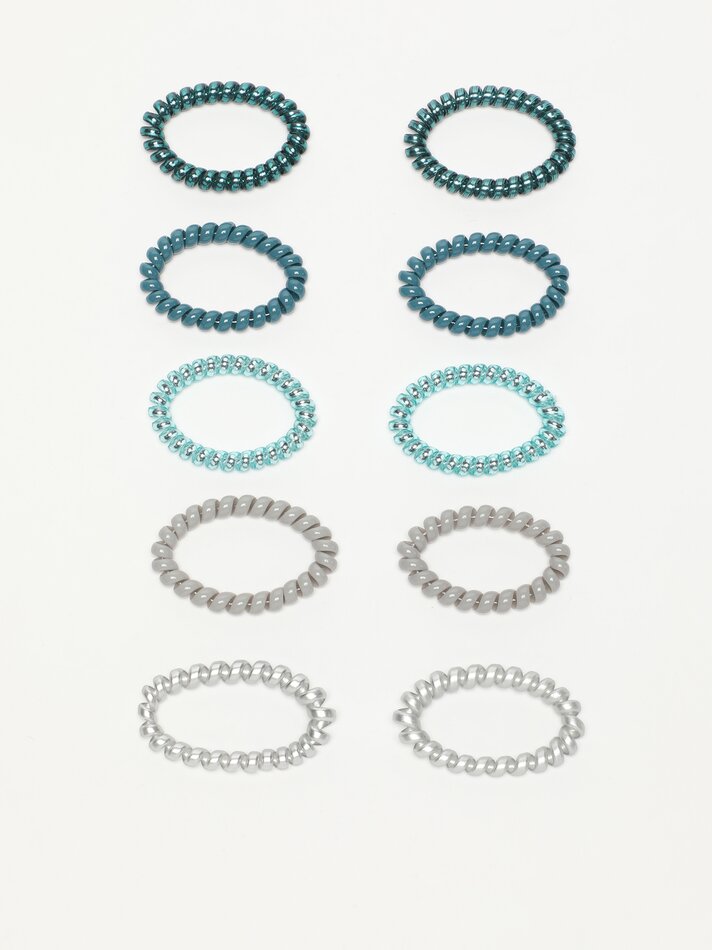 La tendencia de los coleteros de plástico ha ido en aumento en los últimos años hasta conseguir desbancar a las clásicas gomas negras de tela. Esto se debe, principalmente, a que este accesorio daña mucho menos la melena ya que evita que el pelo se rompa. Además, lo mejor de todo es que, aunque tengas el pelo fino, con este tipo de coleteros evitarás que se te resbalen las coletas y tus peinados acaben destrozados. Gracias a sus colores en tonos grises y azules, este pack de Lefties es uno de los más bonitos que te vas a encontrar y, lo mejor de todo, es que solo cuesta 3,99 euros.