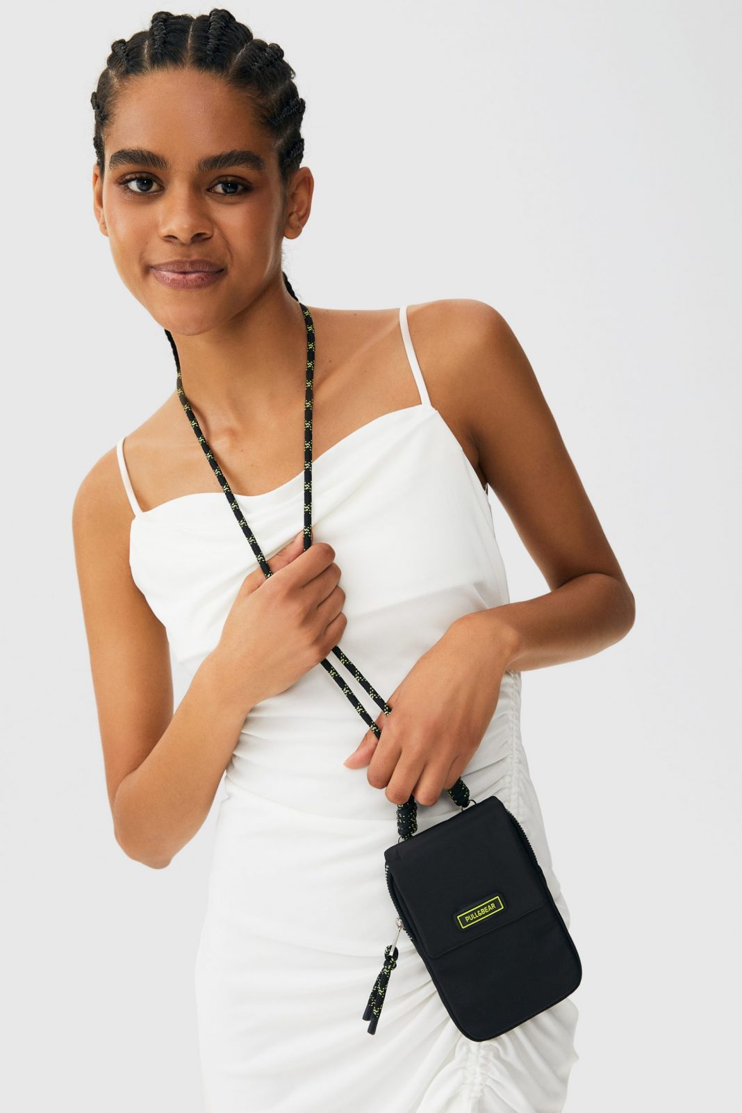 Por mucho que este artículo vaya a tratar sobre bolsos, no podíamos dejar escapar la ocasión para destacar otro de los productos que más sensación están causando esta temporada. No podría ser otro que un porta móvil. Pull&Bear se ha dado cuenta del tirón que tienen estas fundas que permiten proteger el teléfono y a la vez quedar bien con la estética de cada mujer. Pero lo mejor de todo es que gracias a él se puede tener siempre a mano el aparato sin que se arañe de estar en un bolsillo o en el bolso con las demás cosas.