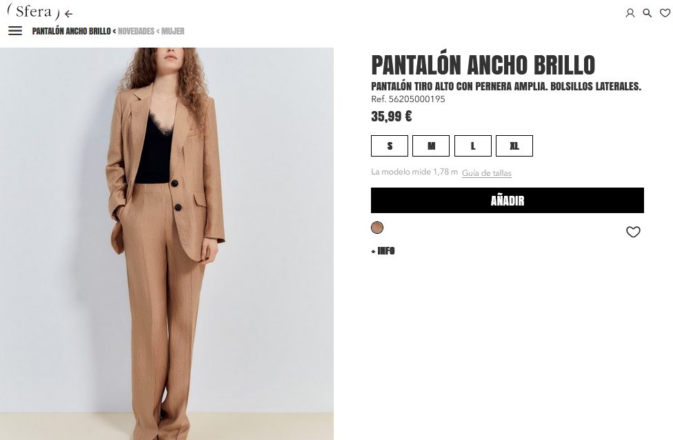 Es un pantalón tiro alto con pernera amplia, ofreciendo un estilo perfecto para aquellas mujeres que aman la moda. Además, cuenta con unos bolsillos laterales para que sea más cómodo y ofrecer un mejor estilo. Entonces, si desean comprar esta prenda solo deben entrar a Sfera por un mejor precio accesible de 35,99 €.