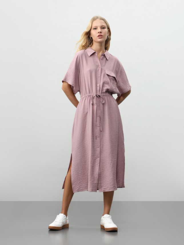 Seguimos mostrándote vestidos de Lefties ideales para utilizar en el comienzo del otoño. Este es un vestido midi con cuello camisero y manga corta. Cuenta con un bolsillo grande en el pecho y cinta de ajuste a tono. Está confeccionado en un cómodo y fluido tejido con textura. Tiene cuello camisero y manga corta. Cuenta con un bolsillo grande en el pecho y cinta de ajuste a tono. Además, está confeccionado en un cómodo y fluido tejido con textura. Como muchas otras prendas de Lefties, se encuentra a un precio bien bajo, un total de 19,99 euros en diferentes tallas.