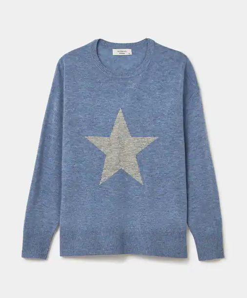 Si te gustan las prendas con motivos o figuras, esta propuesta de la marca Woman El Corte Inglés te va a encantar. Es perfecto para esos días relajados, en los que la comodidad es lo principal, pero tampoco queremos renunciar al estilo. Es de manga larga con cuello caja, con un corte ligeramente holgado, muy confortable, con un dibujo grande de estrella en la parte frontal. Tiene terminaciones en canalé y está disponible en color azul índigo, en blanco y en gris claro. Su precio está rebajado un 75% y ahora te lo puedes llevar por solo 9,99€. Aquí tienes el link.