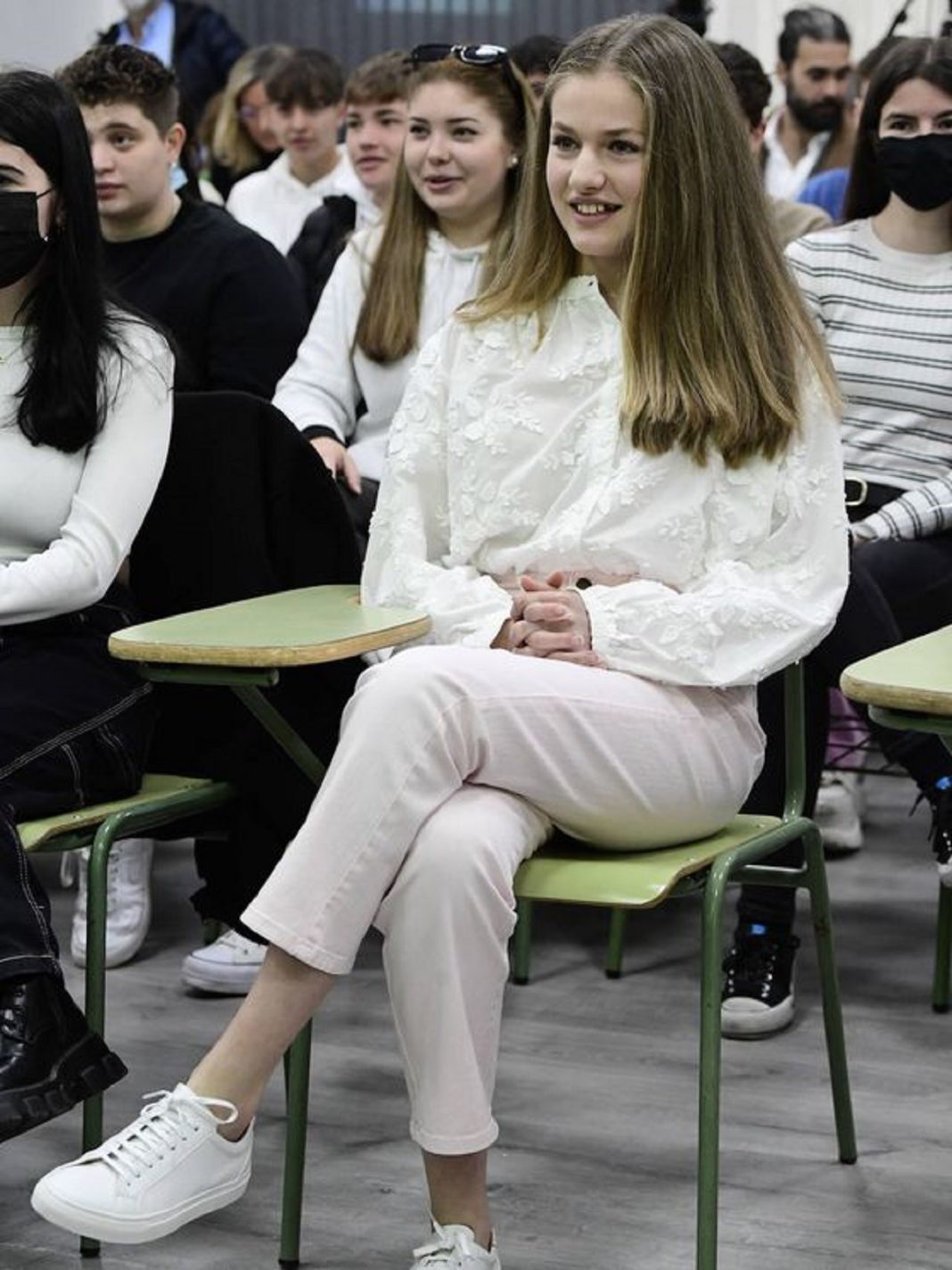 En Semana Santa, Leonor de Borbón tuvo que cumplir varios compromisos. Después de estar presente en un centro de refugiados de Ucrania en Madrid junto a su hermana Sofía y los Reyes de España, el 20 abril de abril, la Princesa visitó el Instituto de Enseñanza Secundaria Julio Verne de Leganés, en Madrid, donde acudió al acto público “Disfruta de Internet con Seguridad”, una jornada que se centró en la ciberseguridad y la juventud. El evento estuvo organizado por el Instituto Nacional de Ciberseguridad, dentro del Programa Jornadas Escolares. Su presencia en este espacio, llenó titulares meses atrás debido a la elección de ropa de aquel entonces.