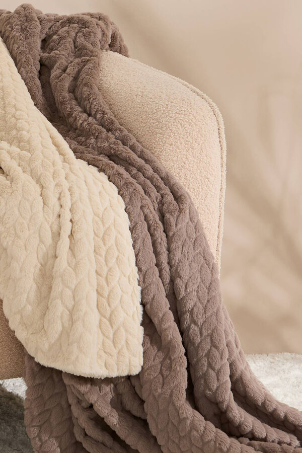 Igual de ideal para los días de más frío es esta manta tipo plaid de pelo corto suave de 550 gramos con decoración de hojas en relieve y reverso de borreguito a juego extrasuave que garantiza el máximo confort. El ideal para decorar el pie de cama o para tener en el sofá. Su tamaño es de 120×180 y está disponible tanto en tiendas como en la app y la web de Women’Secret por 39,90 euros. Puedes encontrarla en dos colores diferentes, beige y marrón, para que elijas el que más pegue con tu casa.