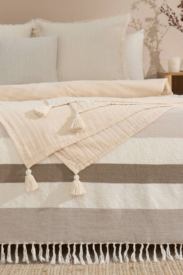 Si no eres extremadamente friolera y prefieres las mantas más frescas y ligeras, o si solo estás buscando un accesorio para decorar el pie de cama o un rincón del sofá, esta manta tipo plaid en muselina de algodón con borlas en las esquinas y color crema es perfecta para ti. Sus medidas son de 120×180 y su tejido es suave y muy ligero. Lo mejor de todo es que está rebajada y ha pasado de costar 39,90 euros a tan solo 29,90 euros, aunque es un producto exclusivo online, disponible tanto en la web como en la app de Women’Secret.
