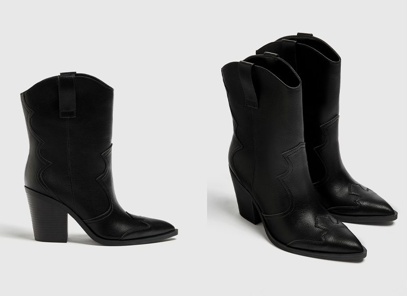 En Pull&Bear también tenemos novedades en calzado que está llamado a ser un éxito de ventas, como es el caso de este botín tacón cowboy. Este modelo, que está disponible en colores negro y plata por un precio de venta de 49,99 euros.
