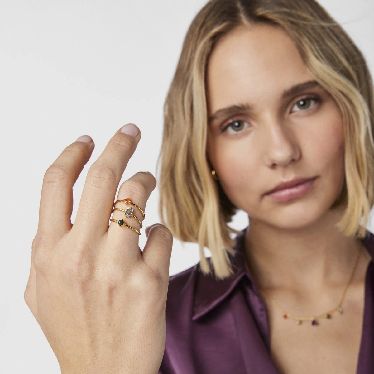 El pack de anillos de Tous son únicos en su estilo. Con ellos podrás dejar llevar por las buenas vibraciones y el magnetismo de su diseño y materiales. Estos son de plata vermeil y gemas de la colección TOUS Good Vibes. Además, cuentan con malaquita cabujón redondo de 3 mm, topacio azul rectangular facetado baguette de 5×3 mm y una cornalina redonda facetada de 3 mm. La plata es de primera ley recubierta de oro de 18 kt con un espesor de 3 a 5 micras y sin ningún otro metal entre ambos. Su precio es de 145 euros.