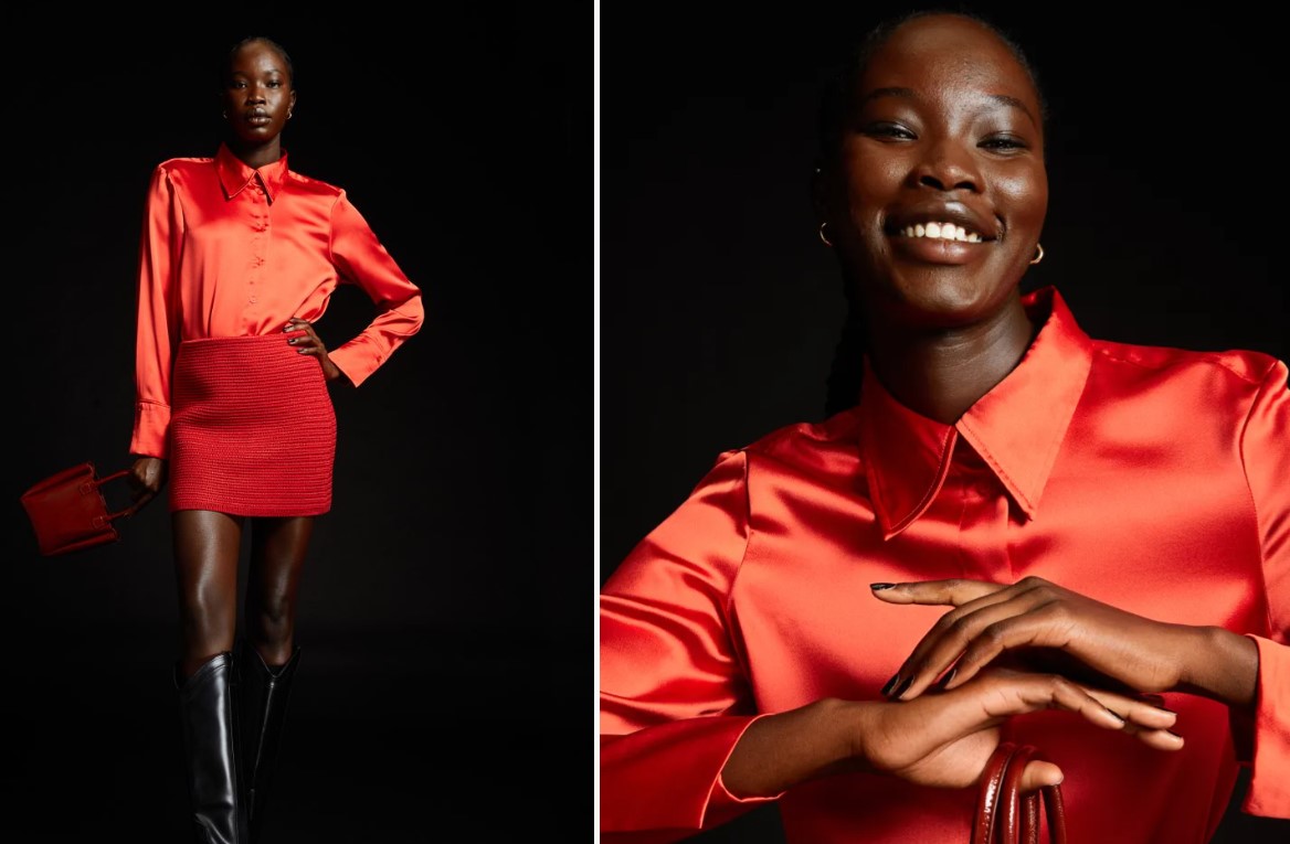 Seguimos mostrándote camisas y blusas de H&M que podrás combinar con tu look de noche. Esta que vimos es una blusa en tejido fluido de satén con cuello puntiagudo, botones delante, canesú en la espalda. Es de mangas largas, con puños anchos abotonados y bajo redondeado. En la espalda es ligeramente más larga. Disponible en tres colores, rojo como el de la foto, y en tono crema o estampada a cuadros. La consigues en los talles que van desde el XS al XXL y el precio de venta es de 19,99 euros.