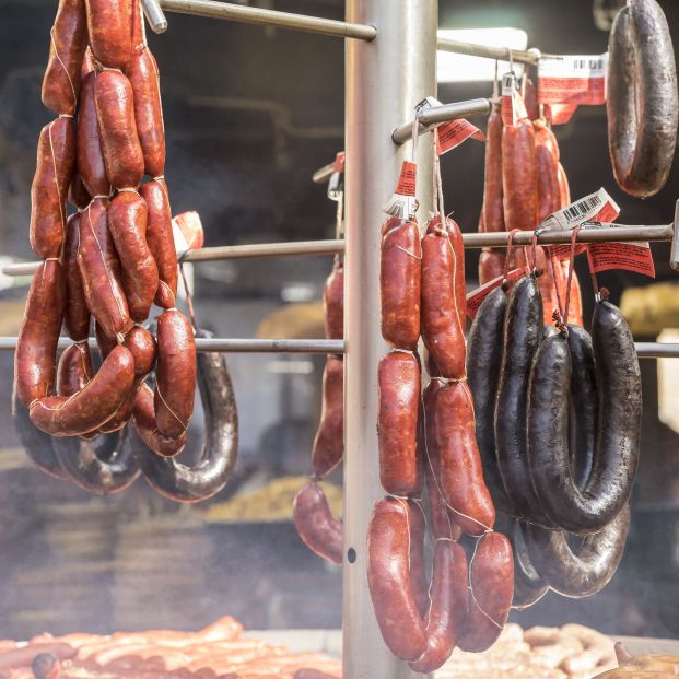 Mientras las alubias se están cociendo con el resto de ingredientes que hemos añadido a la cazuela, vamos a aprovechar para preparar el resto de productos que lleva este cocido montañés. Para ello, cogemos los chorizos y las morcillas y las pinchamos con la ayuda de un tenedor. Con esto conseguiremos que no se revienten durante la cocción y que mantengan su forma tan característica. Acto seguido, las cocemos en diferentes cacerolas para que suelten su jugo.