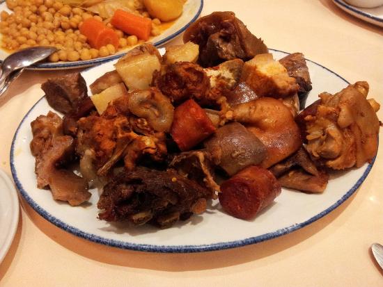 En el momento que añadimos los ajos y las especias restantes, vamos a darle cinco minutos más de cocción para que se junten todos los sabores. Pasado ese lapso de tiempo, retiramos la morcilla, la panceta y el chorizo que hemos añadido a mitad de cocción con mucho cuidado, ya que puede que estén demasiado cocidos por lo que es más difícil que mantengan su firmeza. Pasamos todo a un plato y troceamos todos los ingredientes en trozos de buen tamaño. Esta es la forma clásica de servir el cocido montañés.