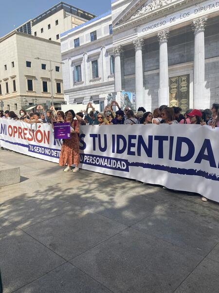 Entidades feministas han reclamado este miércoles ante el Congreso la retirada de la Ley Trans, que se tramita actualmente en la Cámara baja, por considerarla «misógina, reaccionaria y sexista». La portavoz del Movimiento Feminista de Madrid, convocante de la concentración, Ana de Blas, ha rechazado que esta iniciativa se vaya a tramitar por la vía de urgencia, una decisión que, a su juicio, supone una «censura previa por delitos que vulneran la libertad de expresión y la libertad de conciencia de toda la ciudadanía».