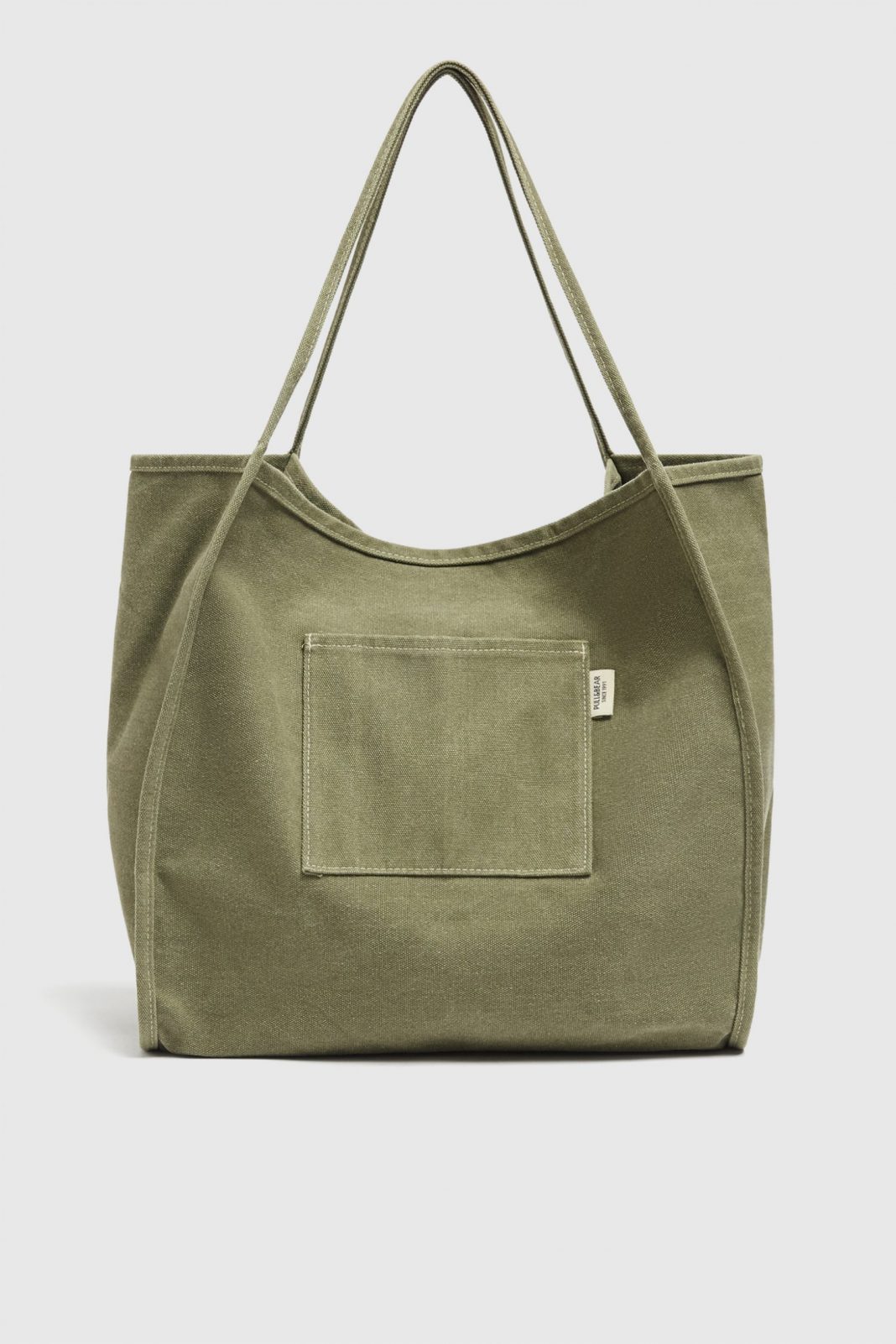 Este bolso shopper de tejido de pana con bolsillo en la parte delantera y asas cortas de hombro es perfecto si buscas un accesorio que llevar a diario en el que te quepan todas tus cosas. Además, su tejido lo convierte en un perfecto complemento para el frío. Su precio es de 15,99 euros y está disponible en verde caqui, negro y rosa palo.