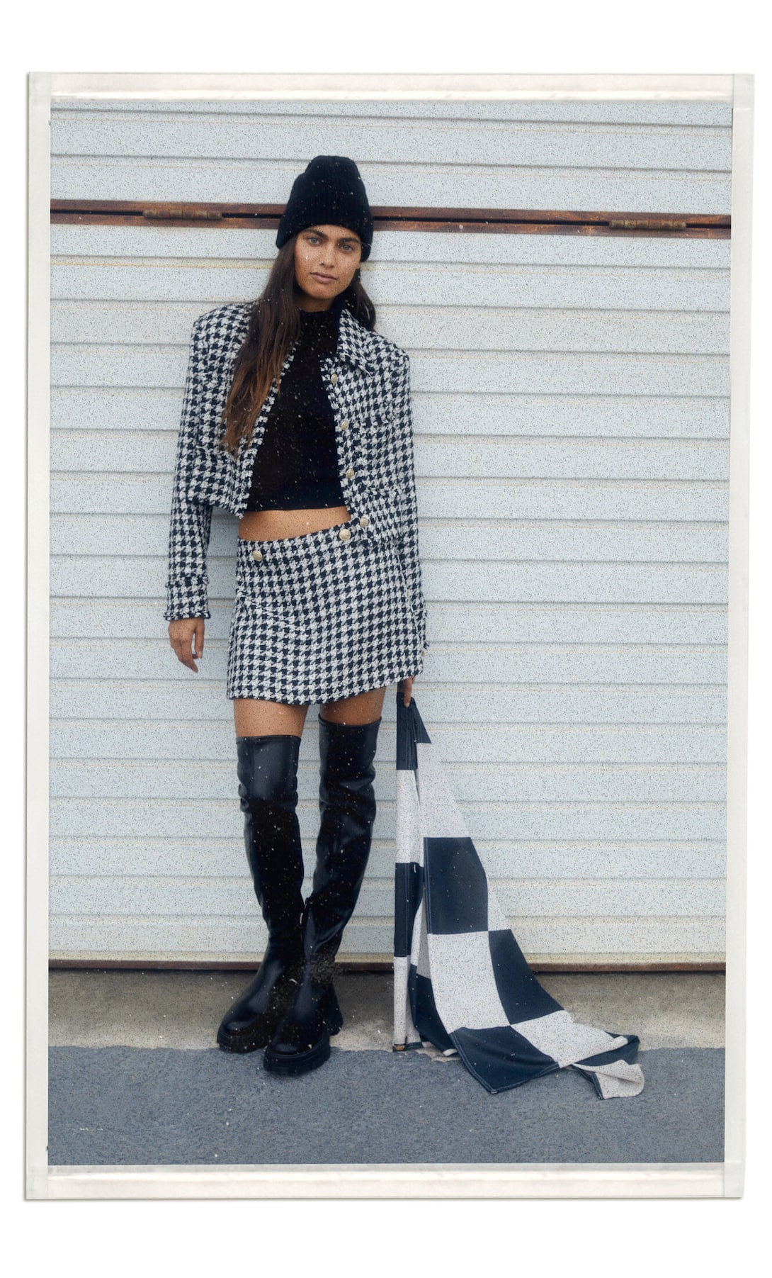 Otra de las prendas que no te querrás perder de la sección de novedades de Stradivarius es esta skort con estampado de pata de gallo. Diseñada en blanco y negro, destaca además por detalles como sus botones dorados. Con un precio de tan solo 22,99 euros, no la querrás dejar pasar.