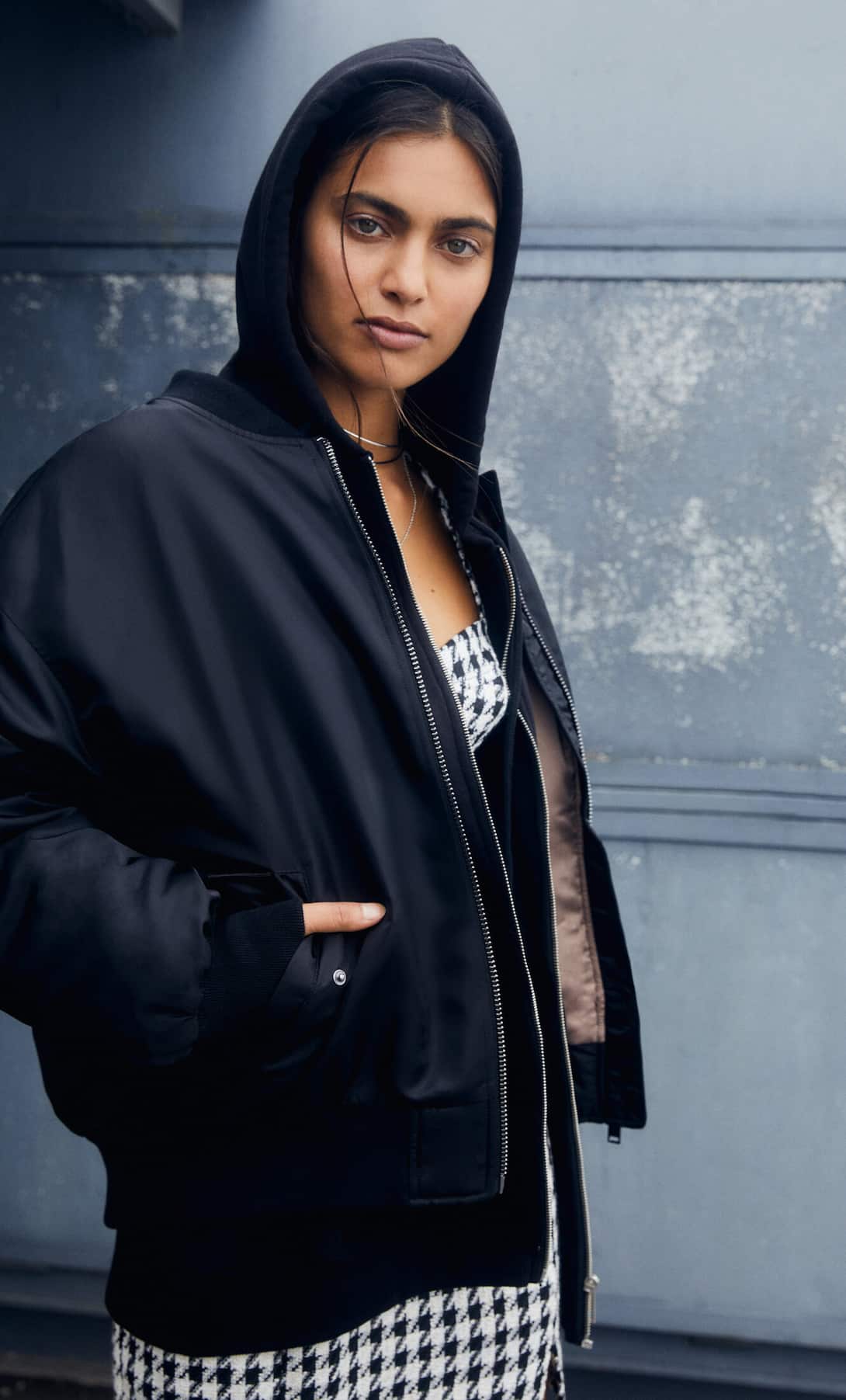 Otra de las chaquetas de entretiempo que no pueden faltar en tu armario es la bomber. En este caso, destaca sin duda esta opción de Stradivarius. Se trata de una cazadora negra con cremallera que podrás llevar en cualquier ocasión. Además, te puedes hacer con ella por solo 39,99 euros. Una gran oportunidad.