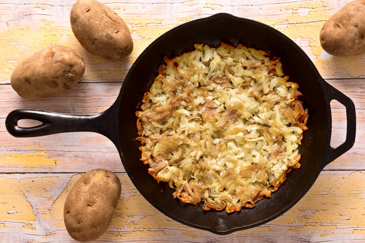 El rosti de patatas es un plato de origen suizo que consiste en una especie de tortas que se elaboran con patata rallada. Recuerdan un poco a la tortilla, solo que se hacen en porciones más pequeñas y no llevan huevo. En Suiza se sirven a menudo para el desayuno, aunque también es un delicioso acompañamiento. Igualmente, se pueden tomar como aperitivo o ser un rico primer plato, acompañando una ensalada. Son muy fáciles de hacer y la receta básica admite un montón de variaciones, así que es cuestión de probar e introducir nuevos ingredientes.