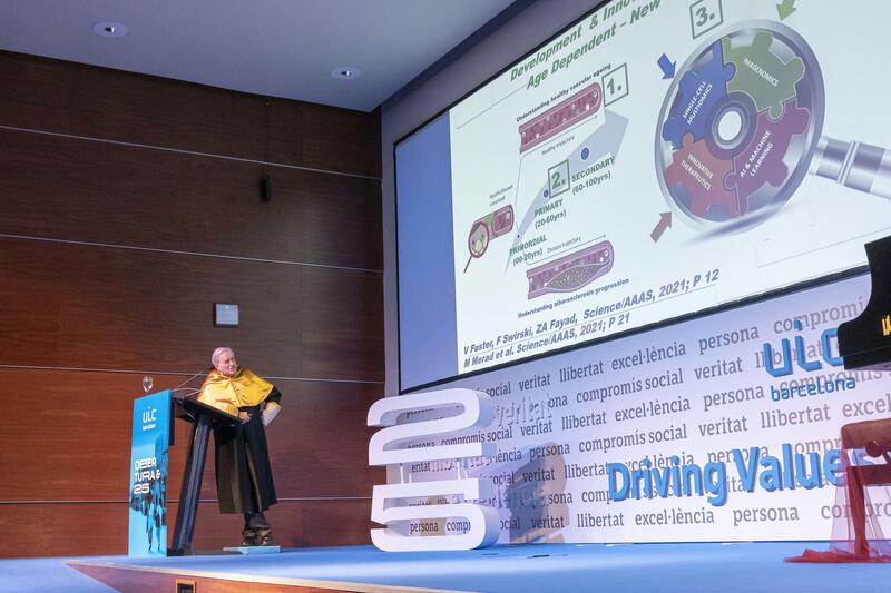 Fuster a afirmado que la enfermedad cardiovascular empieza a los 15 o 20 años, aunque no se detecte hasta una edad más avanzada, y ha reivindicado que han averiguado que la patología «empieza en la región femoral, pero no se manifiesta porque las arterias son muy grandes» gracias a las nuevas tecnologías de la imagen.