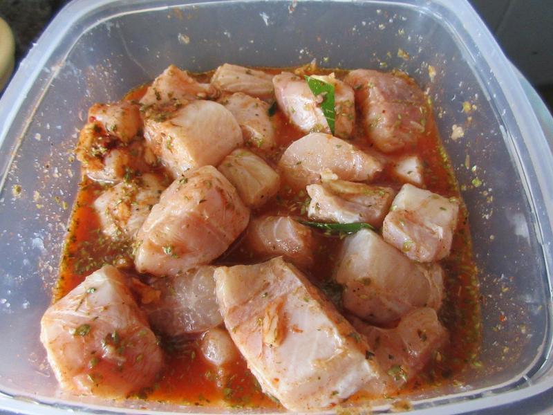 En un mortero, echamos el comino en grano, la sal y los ajos con piel. Lo machacamos todo bien hasta que quede bien mezclado. Añadimos al mortero el pimentón dulce, el orégano y el vinagre, lo mezclamos todo y lo volcamos sobre el bol con el cazón. Tapamos con un papel aluminio o con la tapa de una cacerola, y dejamos que repose dentro de la nevera durante al menos 8 horas.