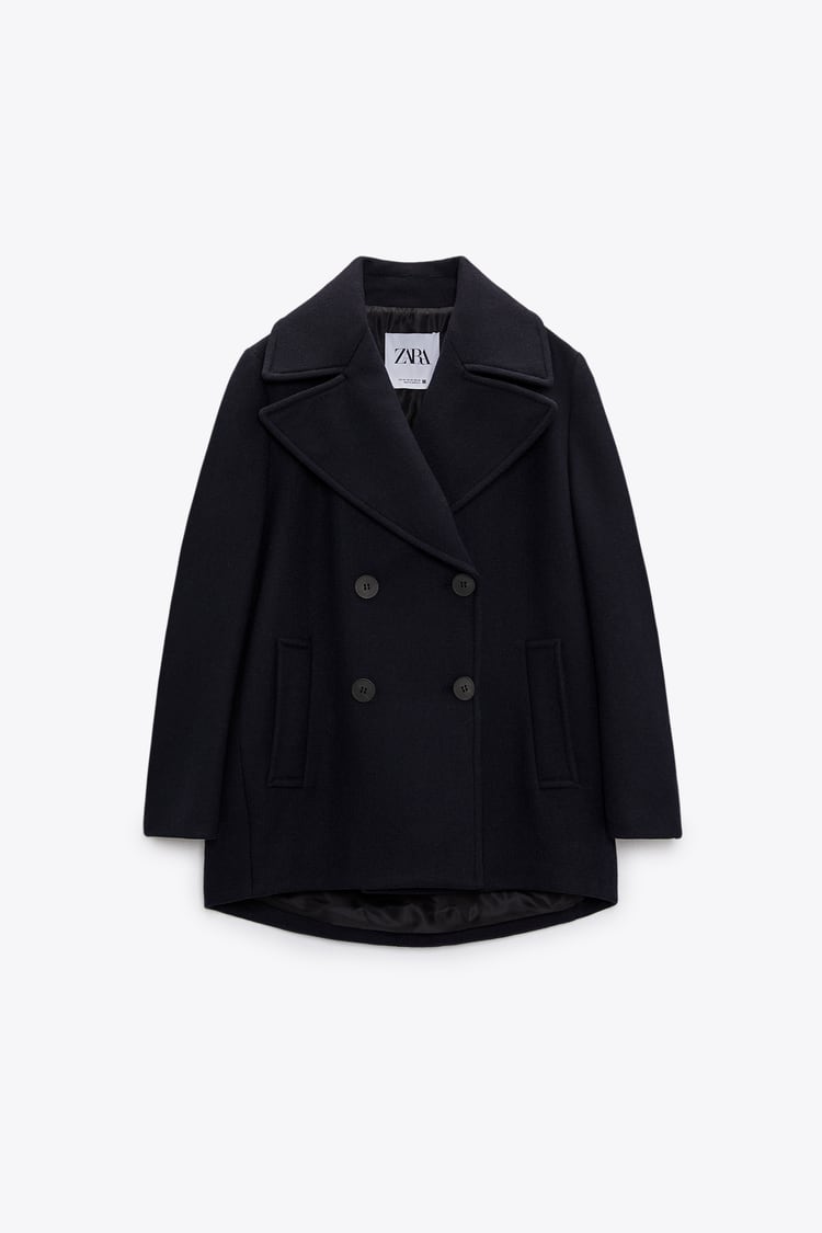 Otro de los abrigos más bonitos y atemporales que te puedes encontrar en Zara es este de cuello solapa y largo medio con bolsillos delanteros en vivo y cierre frontal cruzado con botones. Su tejido en mezcla de lana lo convierte en una de las mejores opciones para los días más fríos del año ya que es una de la prendas de la lista que más abriga. Está disponible en azul marino, tanto en las tiendas físicas como online y su precio es de 79,95 euros.