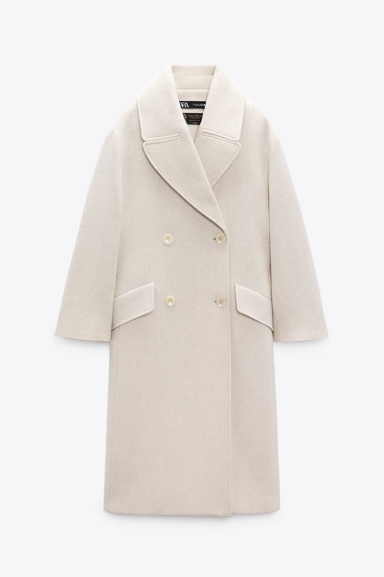 Por último, te traemos este precioso abrigo oversize de Zara confeccionado con tejido en mezcla de lana, cuello solapa y manga larga con hombro, bolsillo con solapa en la parte delantera, forro interior combinado a tono y cierre frontal cruzado con botones. Es una de las opciones más elegantes que vas a encontrar y sirve para cualquier ocasión. Su precio es de 129 euros.