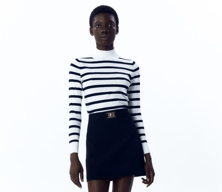 Terminamos con otro jersey, ya que siempre se necesitan varios para estos meses y conviene tener suficientes para el día a día, para combinar o para ocasiones especiales. Este te vale para todo y con un diseño a rayas que nunca pasa de moda. Lo bueno es que puedes combinarlo fácilmente con cualquier pantalón o falda de tonos lisos. En Sfera tienen una versión sencilla con cuello alto disponible en dos versiones. Blanco con rayas negras y negro con rayas blancas. Lo tienes por 15,99 euros.