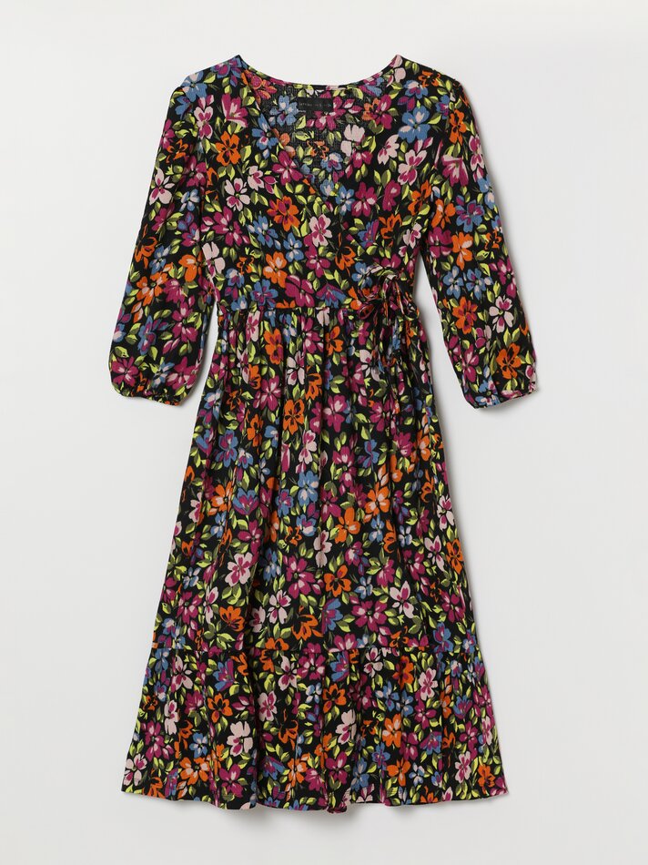 Por último, te traemos este vestido midi de Lefties con escote cruzado y manga larga con cierre delantero de doble lazada a tono que cuenta con volante en el bajo que le aporta vuelo y está confeccionado con un comodísimo tejido texturizado. Puedes encontrarlo con estampado de flores o en rosa palo liso. Su precio es de 15,99 euros y es perfecto para combinar con unos botines de tacón.