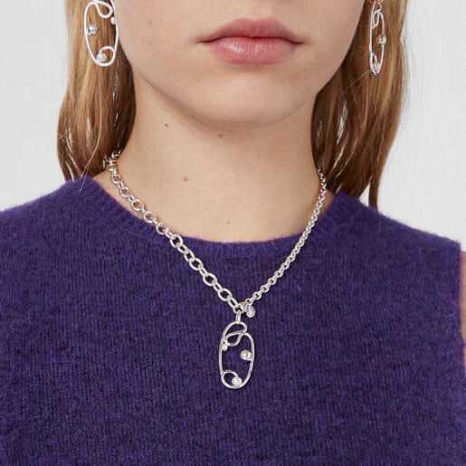 Este colgante de plata también forma parte de la colección Tsuri, en la que las perlas tienen un gran protagonismo. Es un diseño con una estructura en forma de óvalo de plata de primera ley que tiene engarzadas varias perlas cultivadas de 3 y 5 mm. El tamaño del óvalo es de 40 mm y se trata de una pieza que destaca por su elegancia y su originalidad. No se incluye la cadena y cuesta 75€ que puedes pagar en tres meses. Además, Tous tiene unos pendientes a juego si te apetece completar el conjunto.