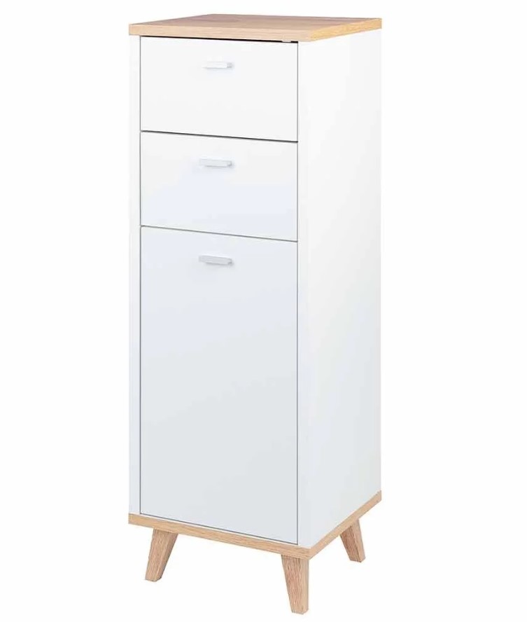 Por último, te mostramos este armario de baño de 1 puerta y 2 cajones de diseño moderno. Es ideal en combinación con otros muebles de esta serie. Se trata de un diseño moderno de imitación de madera de roble de alta calidad. Tiene un estante de altura regulable para diferentes espacios de almacenamiento. La puerta se puede montar en ambos lados y tiene tiradores de metal. Las medidas aproximadas son 96 x 28 x 32 cm y el precio de venta está rebajado y cuesta 35,99 euros.