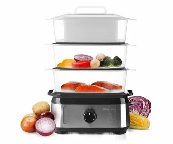 Cocina de forma saludable con esta completa vaporera con 3 recientes independientes, bol para sopa y cuenco para arroz. Se pueden preparar hasta 3 platos a la vez para un menú súpercompleto, variado y ligero. La cocina al vapor mejora la textura de los alimentos al mismo tiempo que conserva todos los nutrientes.