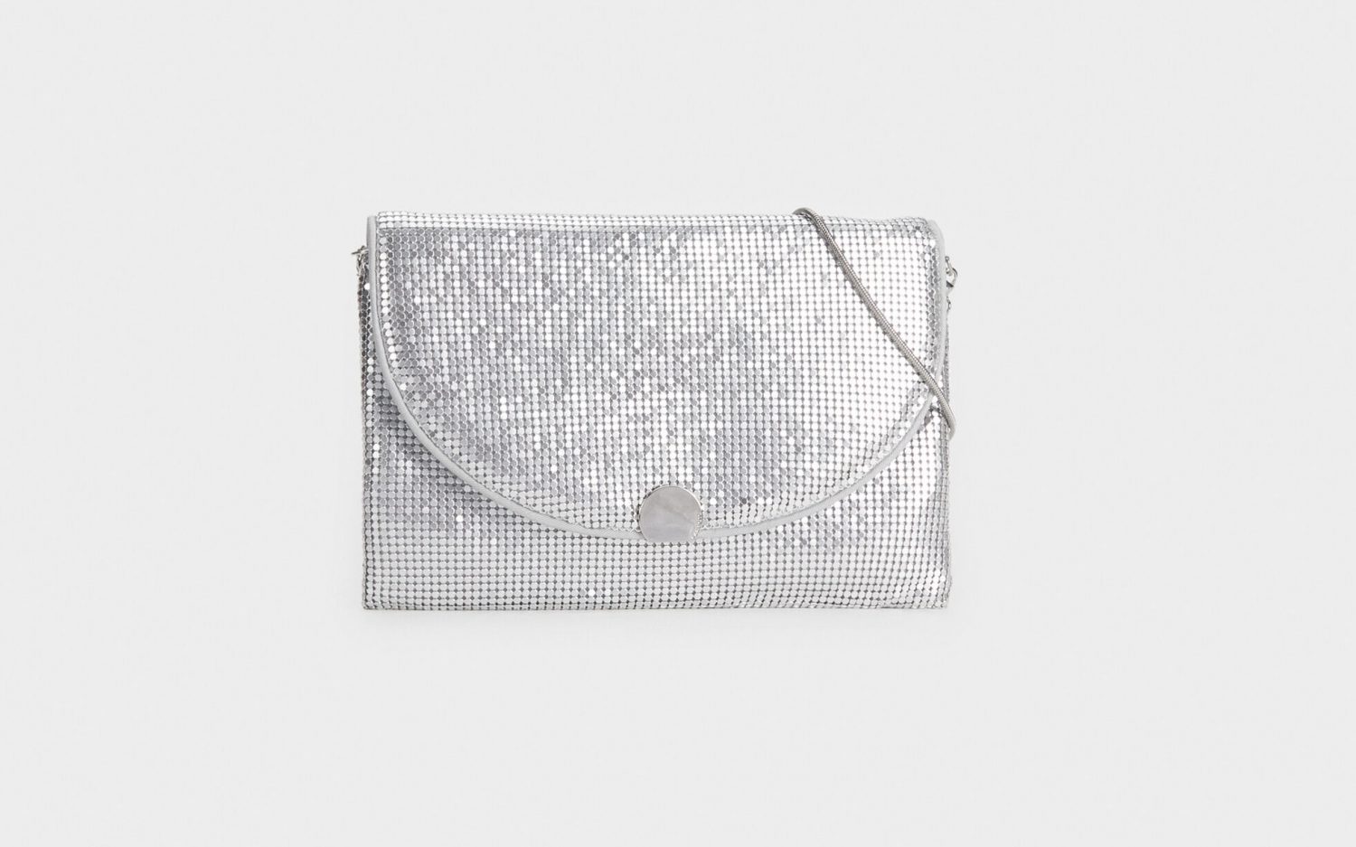 Gastar un dineral en un bolso de fiesta es un auténtico sin sentido. ¿Para que desembolsar una fortuna en algo que cómo mucho podrás usar dos o tres veces al año? Este bolso mini Mesh de Parfois es la solución perfecta. Puede conseguirse online a nada más que 4,99 euros. Una ganga. Su composición interior es poliéster mientras que en su exterior está hecho de aluminio en un 90% y 10% de hierro. Esta disponible en plateado y su medidas son 24x17x1,3 centímetros. Bonito y funcional.