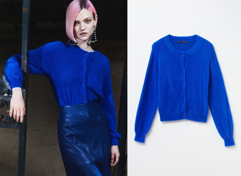 En este caso se trata de una chaqueta de pelo que tiene cuello caja y cierre frontal con botones, la cual se presenta en un color azul azulón. Se encuentra actualmente a la venta por 25,99 euros.