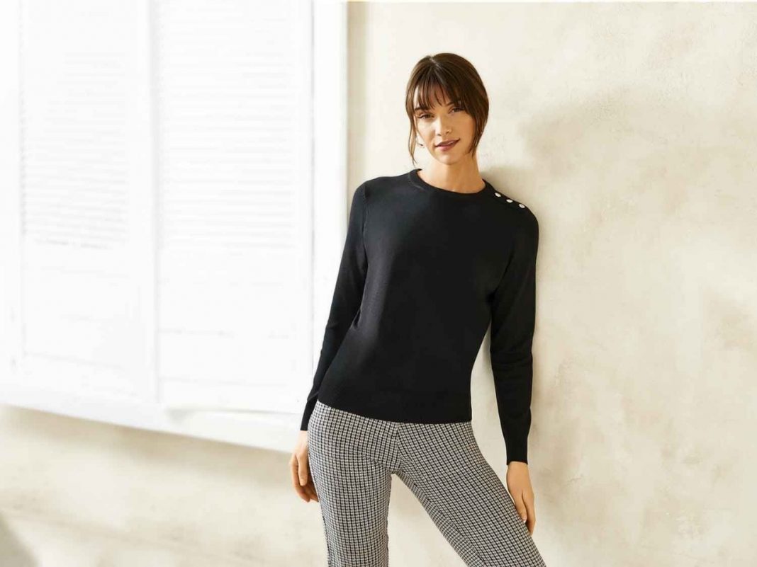 Siguiendo en la misma línea de sofisticación, está el jersey de punto fino con cuello redondo y botones decorativos. Antes era impensado creer que podíamos ir a una cadena de supermercados a buscar ropa, pero con estas piezas es imposible no comenzar a abrir un poco la mente. Lidl permite que puedas comprar en un mismo establecimiento la cena y el atuendo que llevarás. Tiene tallas disponibles desde la S a la L. Vale 8,99 euros.