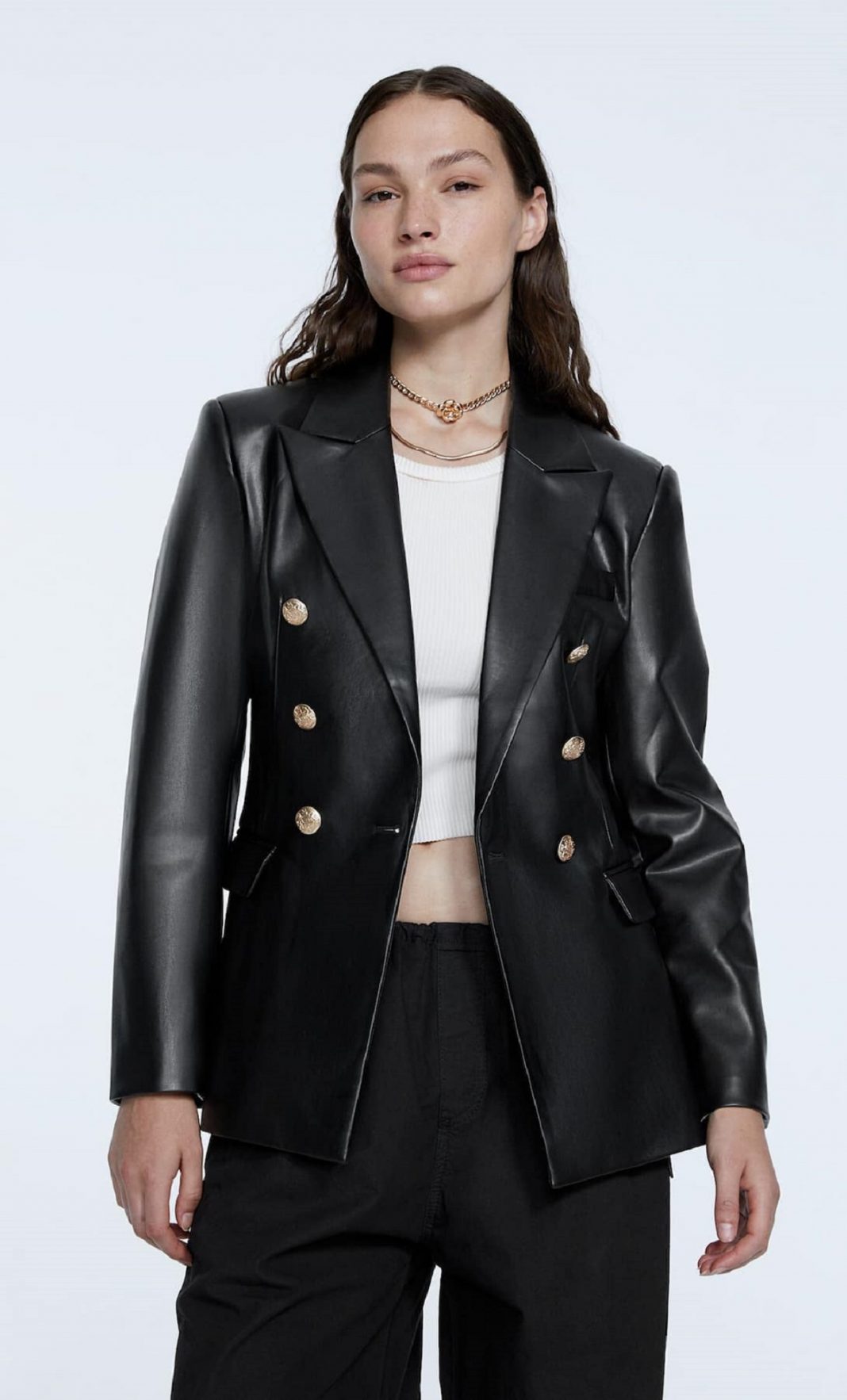 La temporada de las prendas efecto piel está más que instaurada. Incluso Carlota Corredera lució en su regreso a Telecinco un vestido de estas características. La tienda de Inditex vende esta americana efecto piel con botones metálicos que es el sueño de toda aquella que lo ha visto en un escaparate o a través de internet. No necesita presentación porque se ve perfecta puesta. Queda ideal en todas las pieles y la sofisticación es su sello identificativo. El precio no se compara a otras marcas. 45,99 euros es un importe más que razonable para una pieza semejante. ¡Vamos de cabeza!