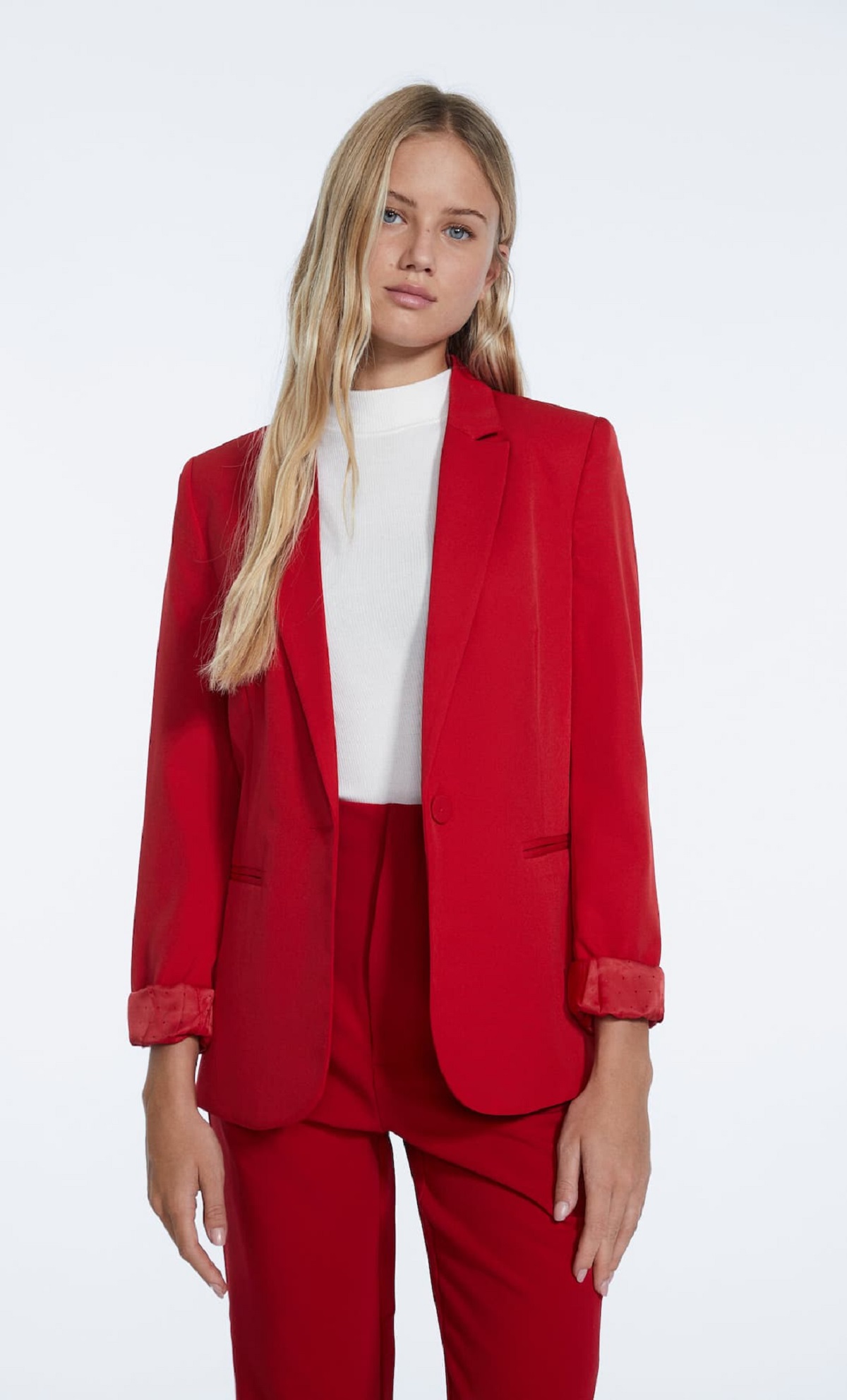 Las hombreras desaparecieron de los diseños durante un tiempo, pero ahora vuelven más fuertes que nunca. Esta americana con solapa, manga doblada con hombreras, forro de rayas en el puño, bolsillos delanteros con tapetas y cierre frontal con botón de Stradivarius es la prueba. Todas aquellas que buscan ir guapas y a la moda llegan a esta firma de Inditex por una razón. Si bien para los más tradicionales, el color rojo para el otoño podría parecer demasiado, las más modernas apostamos por darle un color diferente a esta época del año que siempre se ha asociado a tonalidades tristes. Y, para alegrarnos todavía más, nos la dejan por 29,99 euros.