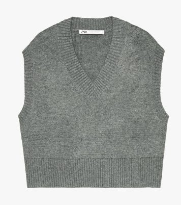 De los jerséis de cuello alto, pasamos a los chalecos, una prenda que se ha popularizado en los últimos años, pasando de ser una pieza de los años 50, a colarse en las prendas fetiches de muchas mujeres. El chaleco punto limited edition está disponible en la página web de Zara y en sus establecimientos por tan sólo 39,95 euros. Lo más llamativo del chaleco es su cuello de pico que estiliza el pecho, además de su manga sisa ancha, su tejido compuesto de lana y su color gris que combina con todo.